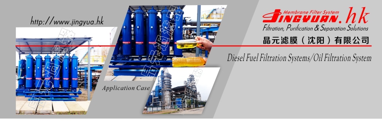 By Jingyuan environmental protection and high-tech diesel purification filters,the impurities, colloid and free water in diesel can be separated at once, as well as decolorizing white soil, decolorizing sand and other particle impurities. At the same time, the membrane elements can be used repeatedly after washed.( Not suitable for emulsified diesel)